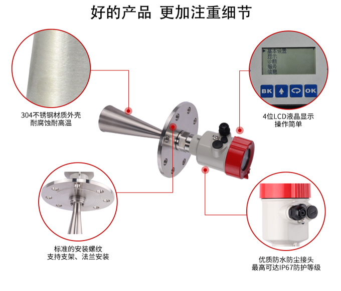 當然,脈沖型雷達物位計并不是適用于所有場合,主要針對圓柱形、35米以內罐體介質的液位測量,但對于球形或者具有攪拌功能的儲物罐就不是那么適合了,而大量程以及粉塵很大的容器或儲罐的話就需要用到另外一種調頻連續波雷達物位計了。而同一種脈沖型雷達物位計,也需要根據不同類型的測量介質來進行不同的選型。比如各種有腐蝕的液體、高溫高壓的液體、易結晶結露等固體料、粉狀料、衛生型等場合,都需要進行不同的物位計選型。而雷達物位計,主要的選型參數為測量范圍(即量程的選擇)、過程連接方式、測量介質的溫度、信號輸出類型等,另外還有一些關于頻率、精度等的細小要求,也是判斷能否滿足您現場需求的一部分。隨著近些年工業產品迅速發展,雷達物位計的品質良莠不齊,大家在選擇雷達物位計的時候,除了一些基本的選型參數的考量以外,還需要對其應對極端環境的能力、測量盲區、信噪比以及頻率進行評估,綜合評價后再行選擇。