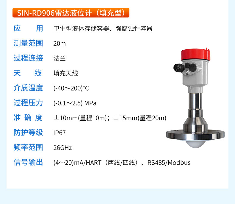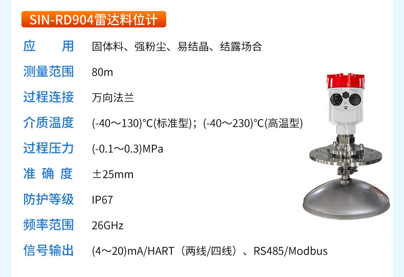 您的位置: 首頁 > 26G高頻雷達物位計 → 聯測儀表SIN-RD904雷達料位計適用于強粉塵、易結晶