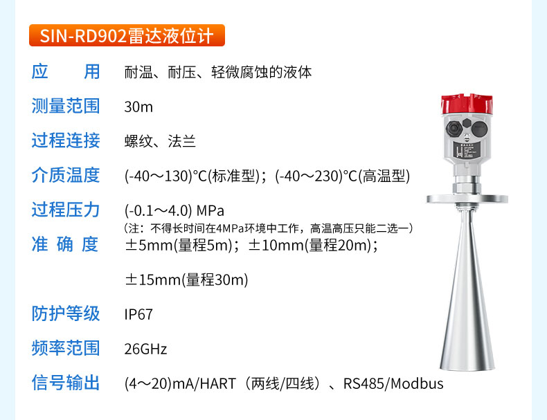 您的位置: 首頁 > 26G高頻雷達物位計 → 聯測儀表SIN-RD901雷達液位計適用于各種腐蝕的液體