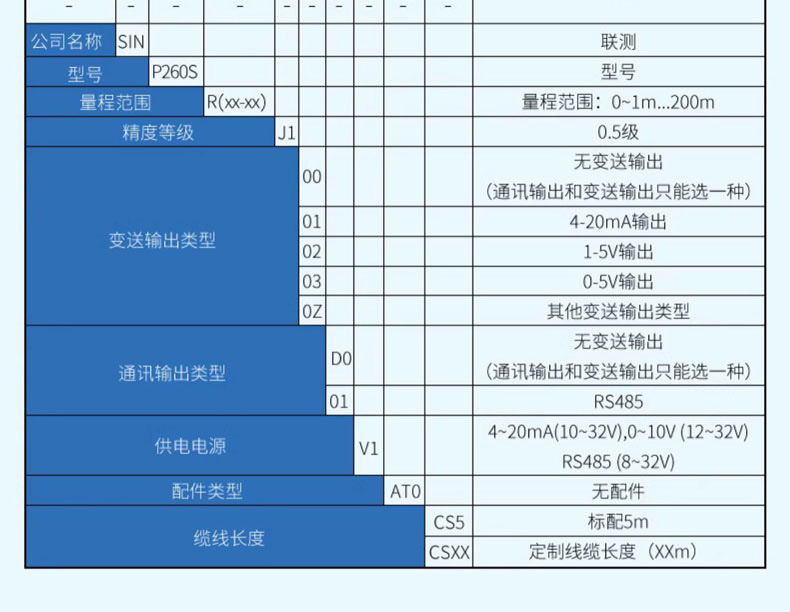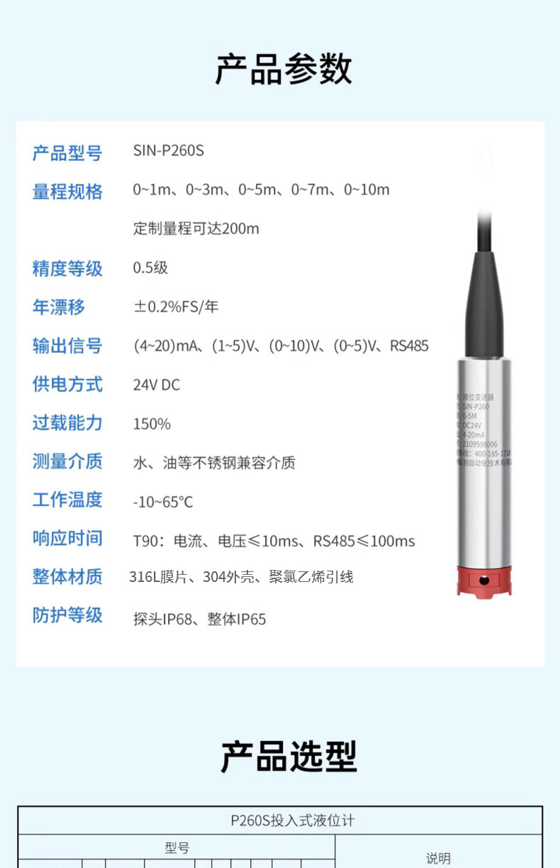 聯(lián)測(cè)儀表SIN-P260S新款投入式液位計(jì)產(chǎn)品特點(diǎn):產(chǎn)品精度高、體積小、使用方便