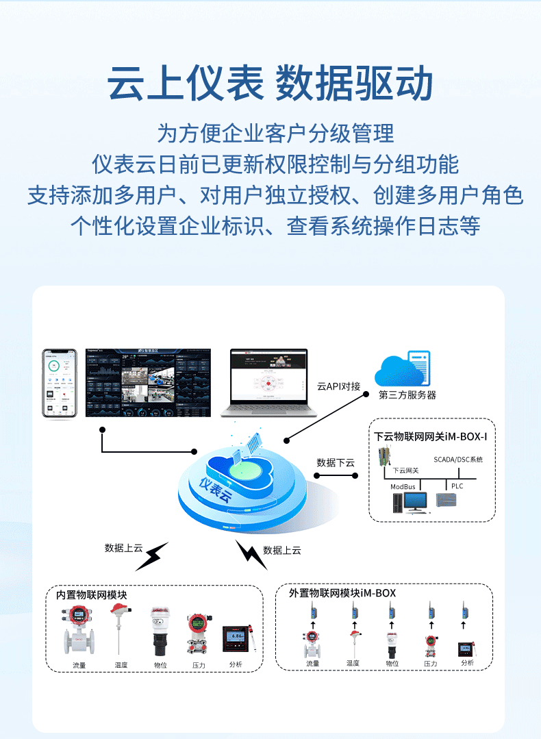 聯(lián)測儀表SIN-MP-C超聲波液位計(測量液位/物位),是一種非接觸式、高可靠性、高 性價比、易安裝維護的液位/物位測量儀器。它不需接觸被測量介質(zhì)就能 滿足大部分液位/物位測量要求,同時搭載我司自主研發(fā)無線模塊擁有超強信號覆蓋能力。